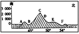 4、单选题 下图是沿10E°的地形剖面图,读后完成1—3题。