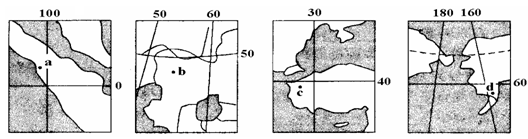 1、单选题 下图为四个地区的地理位置示意图。读图回答问题。