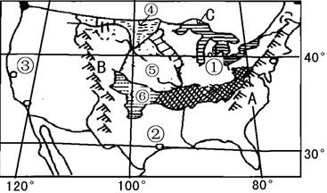 (3)、C处是美国著名商品谷物农业区,并分析其发展的区位条件?(6分)