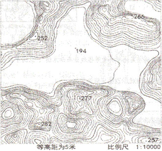 1、单选题 读“某地等高线示意图(单位:米)”,回答下列各题。