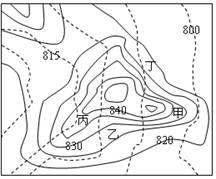 【小题1】实线是黄土表面等高线,虚线是黄土底面(基岩表面)等高线;甲处等高线是830-835米,甲处基岩表面高度是800-805米,由此可知甲处黄土层的最大厚度可能达到35米。选B正确。