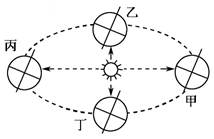 5、单选题 2012年4月4日清明节,这一天地球在公转轨道位置较接近图中的: