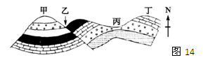 4、单选题 读“某地区地质构造图14”,完成问题。