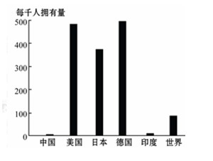 3、单选题 下图为某跨国公司对部分国家使用该公司产品的普及率所做的调查统计图,经过调查决定在中国北京投资建厂。据此回答1—2题。