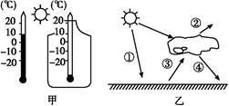 小题1:图甲为模拟温室效应的小实验,两支同样的温度计静置在阳光下,十分钟后,透明玻璃瓶内温度计的读数可能是( )