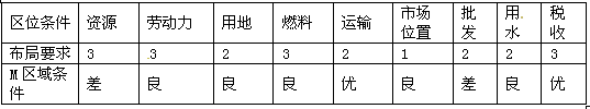 3、单选题 读石化工业布局要求与M区域生产条件评价表(表中数字代表区位因素重要程度:1—指向性要求;2—重要要求;3—一般要求),回答下列各题。