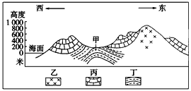 2、依地形的高低起伏来判断,图中乙丙丁三种地层的软硬程度,由硬至软排列应为