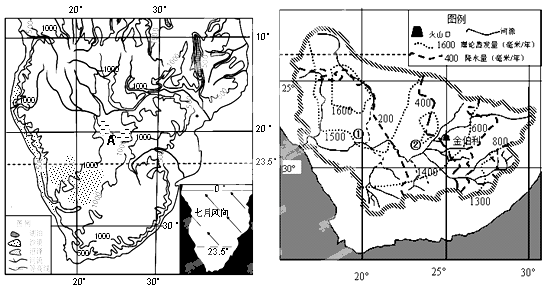 材料一:右图所示河流是南非径流量最大的河流,流域内矿产资源丰富,在金伯利附近死火山通道中发现了金刚石原生矿,并在该河入海口发现了规模大、品位高的金刚石砂。