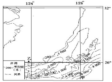(2)图中乙岛屿是我国的钓鱼岛,从海底地形说明其是我国的领土。(4分)。