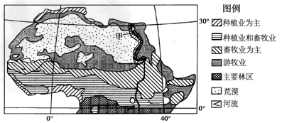 3、单选题 下图是世界某区域农业地带分布图。读图回答1~2题。