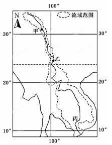 小题1:图中河流的甲——乙河段流域范围非常狭窄,其主要原因是?