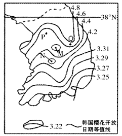 1、单选题 韩国的樱花每年从3月下旬开始绽放,直到5月中旬结束,花期长约1个半月,期间都会有大量中国游客赴韩赏花。下图为“韩国樱花开放日期等值线图”,据此回答下列各题。