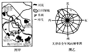 3、综合题 下图是天津市五大片新建住宅区,读图回答下列问题。
