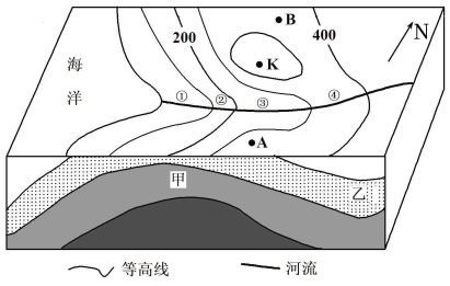 B.甲地岩石顶部因受挤压,岩石破碎容易被侵蚀