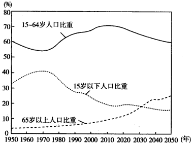 3、单选题 “人口红利”指的是在一个时期内,社会抚养指数相对较小,总人口中劳动适龄人口比重较大。下图为我国人口年龄结构变化图。回答1—3题。