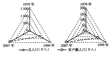 2、单选题 读我国沿海某城市人口增长统计示意图,回答下面2题。