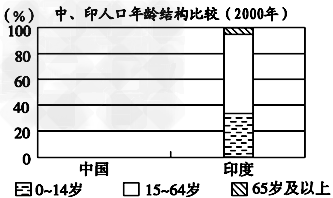 (2)表中显示中国15~64岁人口比例高于印度,但是人口年平均增长率却低于印度,其主要原因是______________________________________________。