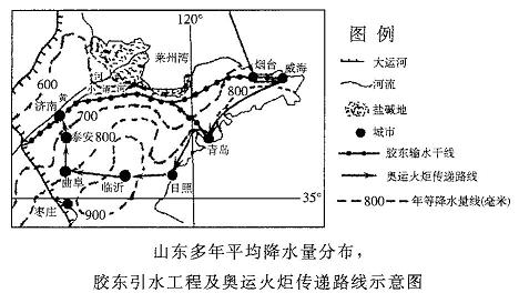 材料一?为缓解胶东地区用水紧张状况,山东省正准备引长江水到胶东。该工程从东平湖引水至济南.利用小清河河道向东引水与“引黄济青”工程相接.在潍坊宋庄向东北引水至烟台、威海。