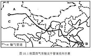 3、综合题 读我国西气东输主干道走向示意图,回答下列问题:(10分)