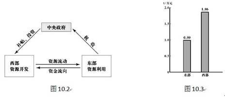 (3)读图10.2、10.3,简要说明我国西气东输是如何促进东、西部地区协调发展的?