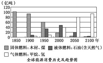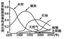 材料一:该图为世界能源消费构成比例变化图。
