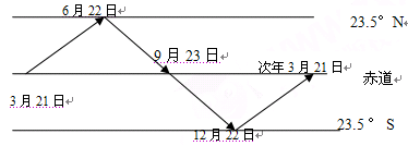本题解析:由于黄赤交角的存在,太阳直射点在南北半球间来回移动,基本规律如图