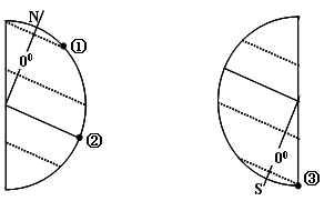 【小题2】当①③两地同时日落时,下列说法正确的是
