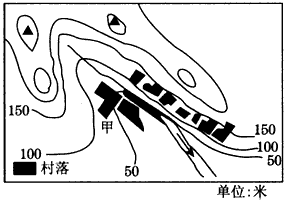 2、单选题  读“某村落分布示意图”,回答1~2题。
