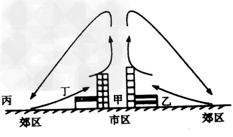 5、单选题  读城市风示意图,回答下题。如果要在图中布局火电厂,为了减少城市风对市区空气的污染,应选择