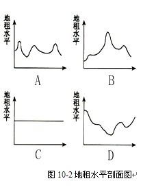 ⑵ 图10-2的A、B、C、D中可以反映图10-1沿“A—B”一线地租水平变化的是(?)。
