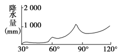 小题1:该曲线图反映的降水量的沿北纬30°的东西经度变化规律,其降水变化主要受到大
