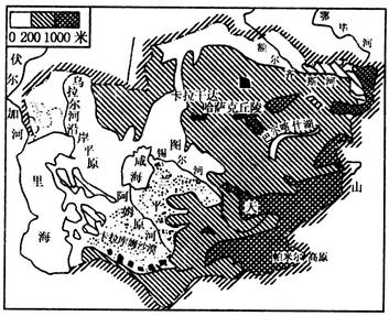 5、综合题 读中亚地形图,回答下列问题。(6分)
