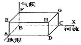 4、单选题 下图中各坐标分别表示气候、地形、河流三种区位因素,箭头指示方向表示区位条件优越性增加。读图完成下列各题。