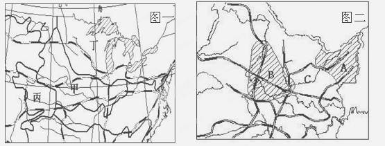 1.美国甲、丙农业带的农业区位优势有2.图二地区为我国最大的商品粮基地,与珠江三角洲等地区相比较,其优势条件是3.下列关于美国东北工业区的叙述正确的有