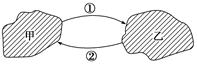小题1:若甲、乙分别对应目前我国的农村地区和城市地区,则沿箭头①方向在区域间调配的是( )