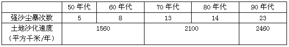 (1)表中显示我国的土地沙化速度在不断加快,其原因可能是