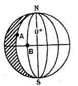 1、综合题 读图(阴影部分为黑夜),回答下列各题:(12分)