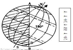 (3)此时所示的白天与黑夜的交界线是?(晨线、昏线),此时北京时间为?。