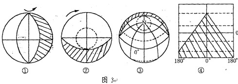 3、单选题 读下列“地球光照图,”(图中阴影表示黑夜),回答1~2题。