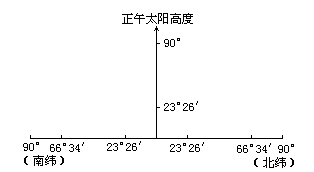 (5)请在下图中画出该日各纬度正午太阳高度的分布折线,并简述其规律(2分)