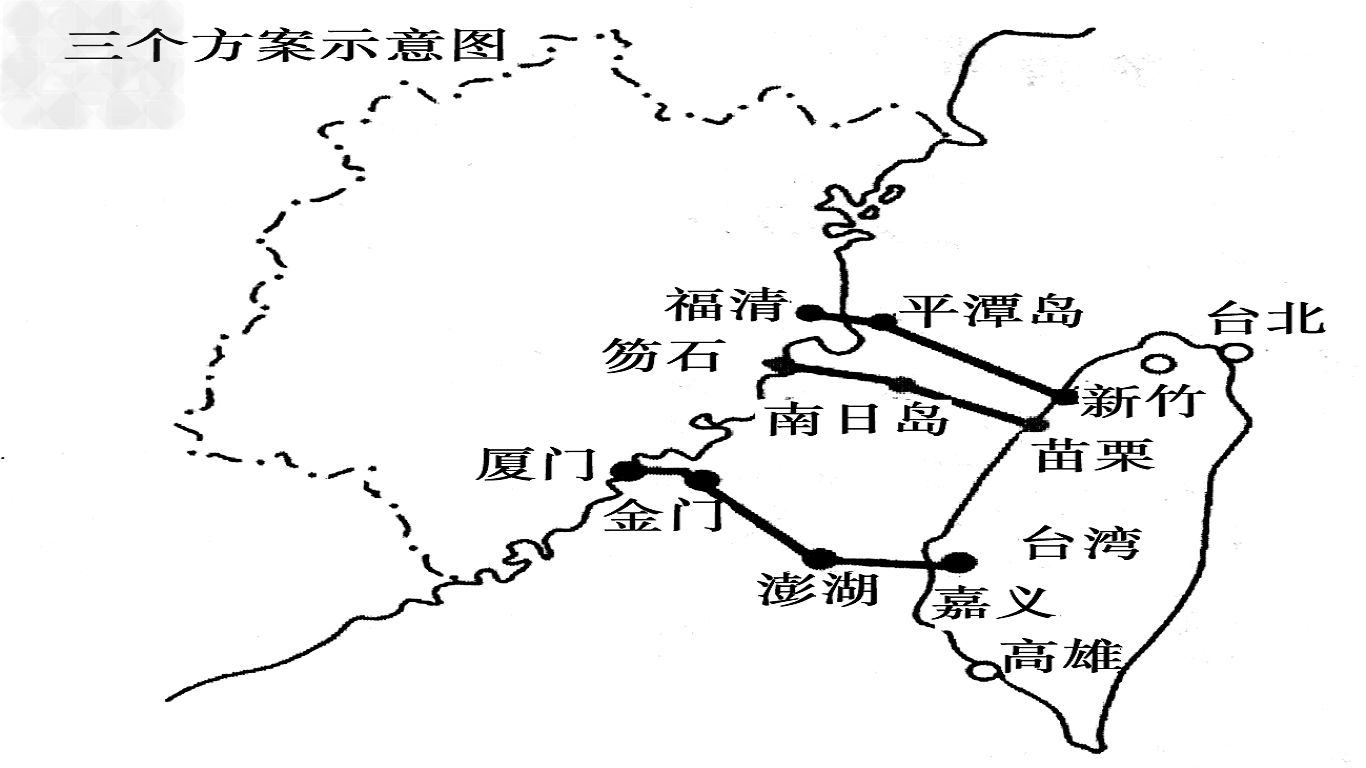 2、填表题  在大陆拟订的台海隧道计划中,专家主要提出了三个方案,即北线、中线和南线方案,起点均在福建。据此回答1—2题。