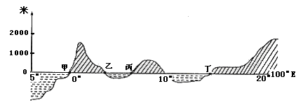 2、单选题  该图是沿100°E绘制的地形剖面图。据图回答22—23题。