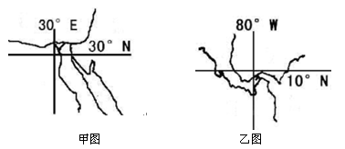 (1)结合两条运河所在的经纬度位置和海陆轮廓判断,甲图表示苏伊士运河,乙图表示巴拿马运河。
