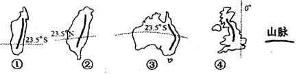 1、单选题  读世界某些岛屿或大陆轮廓示意图,回答题。