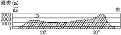 某地沿25°纬线地形剖面示意图