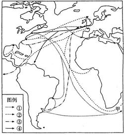 4、单选题 读大西洋两岸四种工农业产品的输入(出)路线图,回答16-17题。