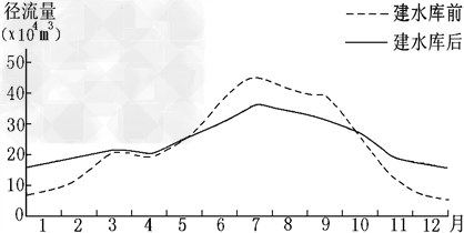 1、单选题 读某河流修建水库前后径流量变化示意图(如下),回答1-2题。