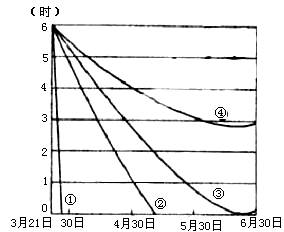 3、单选题  图中四条曲线分别示意四地3月21日到6月30日的日出时间。读图,回答下面几题。
