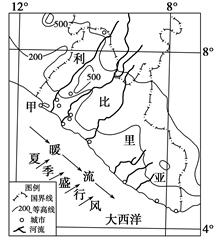 4、综合题 读“利比里亚自然地理要素图”及相关材料,结合有关知识,完成下列各题。