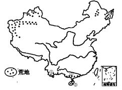 1、综合题 (32分)解放前,中国有著名的“三大荒”,如今已经变成了“三大仓”:“北大荒”变成粮仓,“西大荒”变成棉仓、粮仓,“南大荒”变成热带经济作物仓。读“我国‘三大荒地’分布示意图”,回答下列问题。